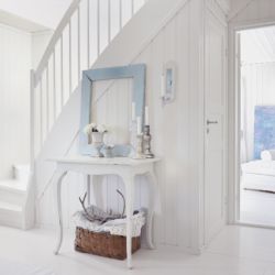 Wreszcie znaleźli swoje miejsce. I choć na początku bali się, że to zbyt daleko od Oslo, okazało się, że w gruncie rzeczy mają całkiem blisko do rodziny. Dom zbudowany został w miejscu starego, który spłonął 17 lat wcześniej. Tyle że dużo trzeba było tam zrobić. I w środku, i na zewnątrz. Przebudowali wejście, powstał też zadaszony taras. Cały dom jest w bieli. Ale nie ma się poczucia, że jest to wnętrze zimne, sterylne. Przeciwnie. Biel została przełamana turkusem starej ławy, błękitem obrazów, kolorem kwiatów.