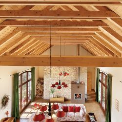 W sypialni gospodarzy na honorowym miejscu – nad łóżkiem na ścianie – wiszą dwa kamienne serca. To prezent od budowniczych górali. Wyciosali je i wmurowali.