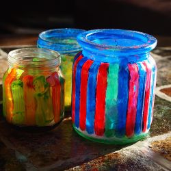 Lampiony z małych słoiczków wiszące, z dużych stojące. Wystarczy trochę dekoracyjnego piasku na dno i świeczka. Uchwyty dorobisz z drutu, a szkło ozdobisz farbą do witraży.