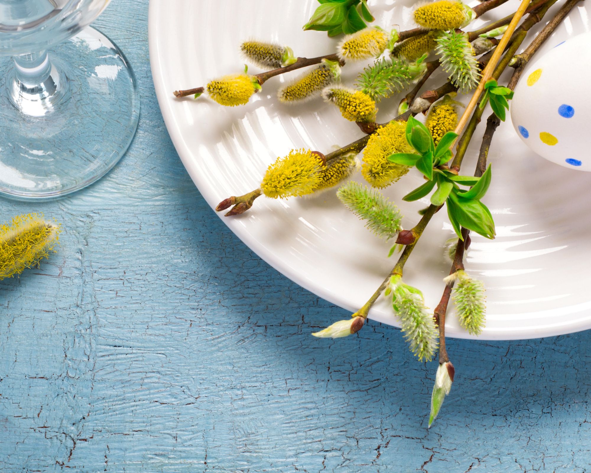 Stół wielkanocny – dekoracje z kwiatów, piórek i pisanek